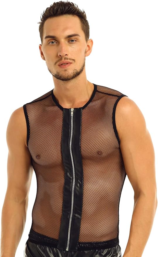 ACSUSS Men's Sleeveless Fishnet Muscle Tank Top Vest Clubwear