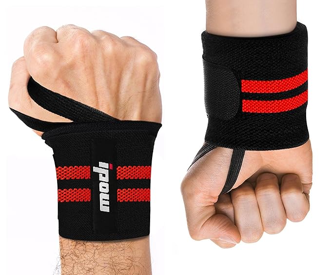 IPOW 18.5" Professional Quality Wrist Straps Support Braces Wraps Belt Protector with 2.5" Thumb Loops for Powerlifting, Bodybuilding, Weight Lifting, Strength Training, One Size fits All Men