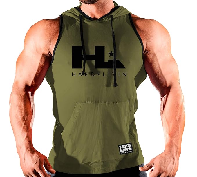 Monsta Clothing Co. Men's Bodybuilding Workout (Hard Livin-icon) Hooded Tank Top